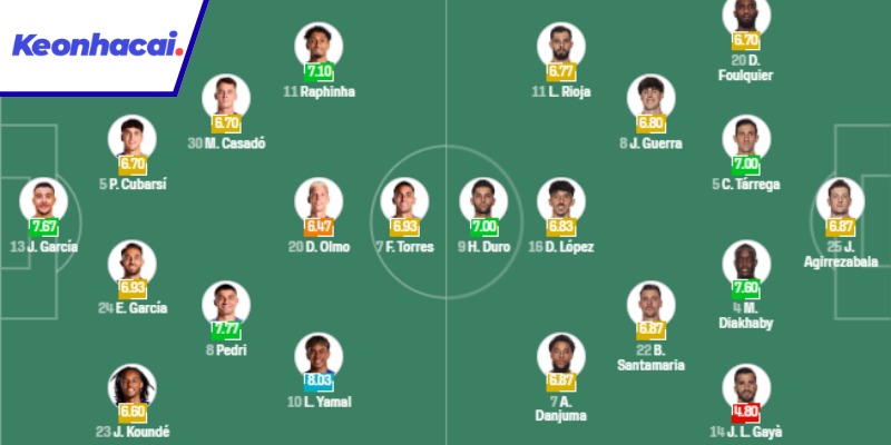 Cầu thủ ra sânIñaki Peña, G. Martín, Eric García, Cubarsi, Koundé, Casadó, Pedri, Dani Olmo, Lamine Yamal, Raphinha, Ferran TorresAgirrezabala, Foulquier, C. Tárrega, Diakhaby, Gayà, Javi Guerra, Diego López, Rioja, Santamaría, Danjuma, Hugo Duro