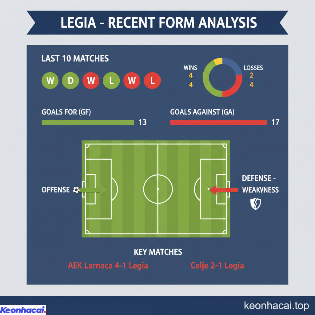 Legia cũng cho thấy một phong độ không mấy ổn định trong thời gian gần đây, xen kẽ giữa chiến thắng và thất bại.